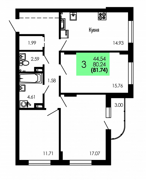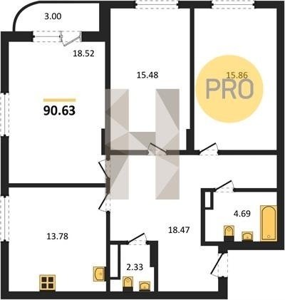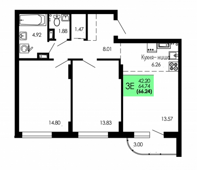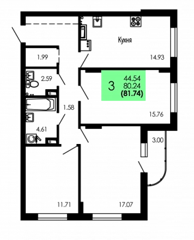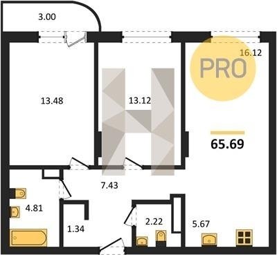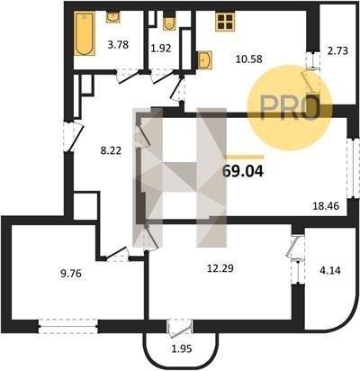 Площадь от 69.04 м2