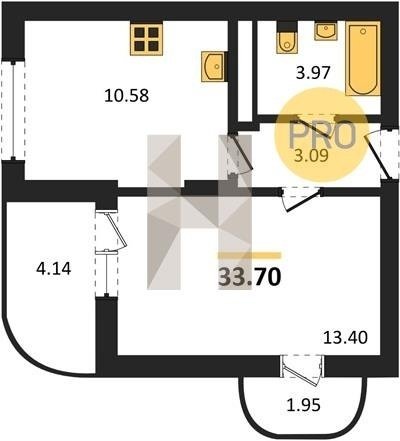 Площадь от 33.7 м2