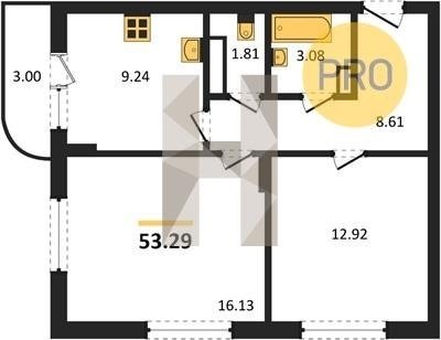 Площадь от 53.29 м2
