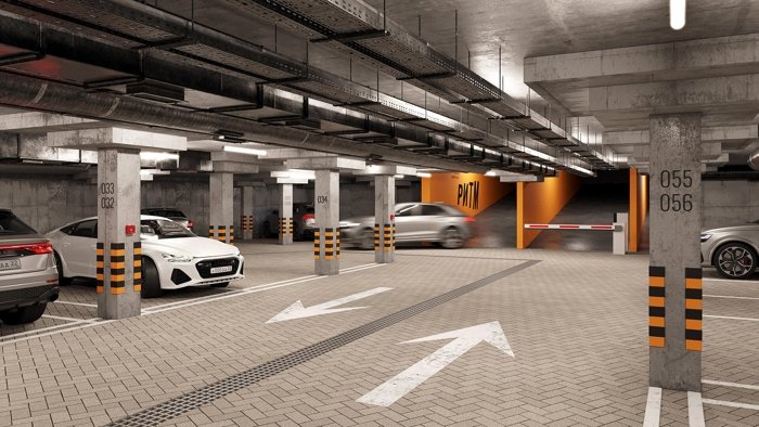 Подземный паркинг на -1 этаже вместимостью на 114 машино-места, в том числе семейные парковки на два автомобиля освобождает двор от машин — там гораздо приятнее гулять с детьми или заниматься спортом. Жители смогут выходить к своему автомобилю в теплый паркинг прямо из лифта — нет беспокойства из-за погодных условий или за сохранность транспортного средства. Ваши гости тоже не останутся без парковки — на придомовой территории организовано - 131 место и вне придомовой территории - 213 мест.