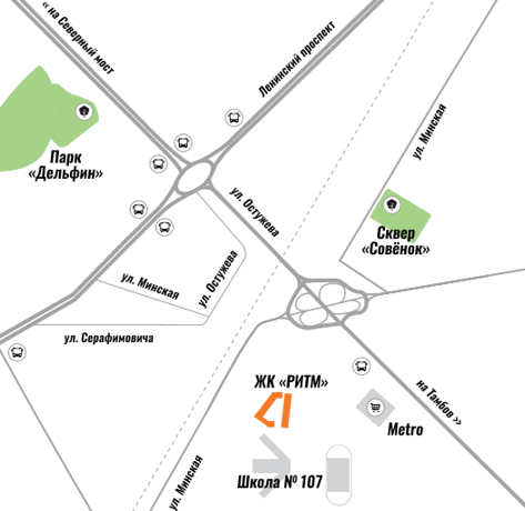 Инновационное жилье в ЖК «Ритм» совсем рядом — 5 минут до Остужевского кольца, 20 минут до центра, рядом новая транспортная развязка. Легко добраться до работы и вузов, на концерт или в гости.