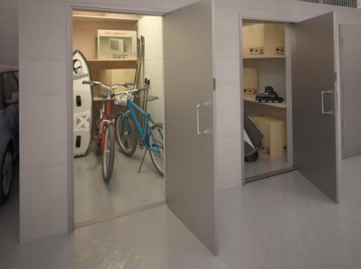 Келлеры для хранения вещей в цокольной части комплекса. Колясочные на первом этаже.