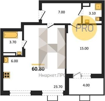 Площадь от 50.9 м2