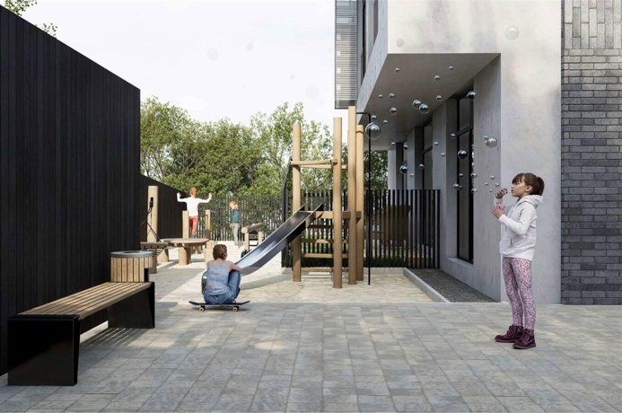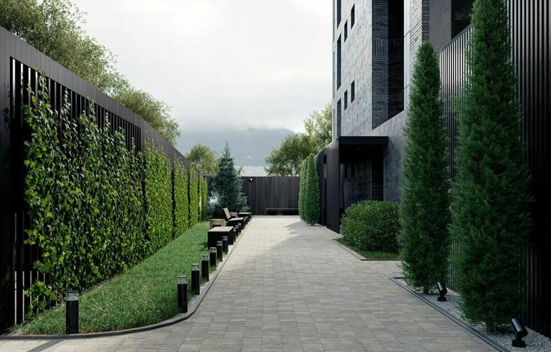 Благоустроенный двор с беседками, зоной барбекю, детской площадкой и спортивным уголком. Озеленение продумано так, чтобы двор был красивым и ярким в любой сезон