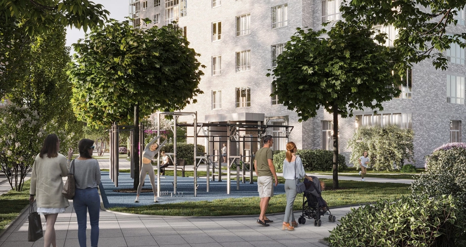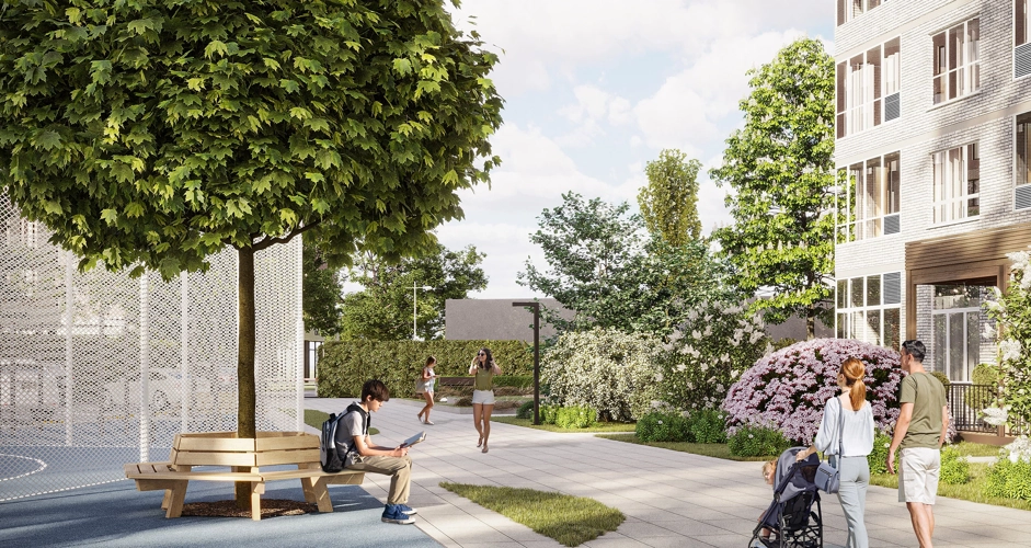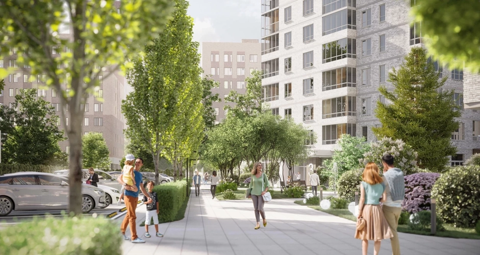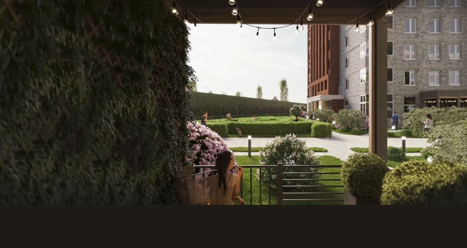 На территории ЖК создан целый сад с десятками видов растений и разнообразным функционалом: зоны для прогулок, тихого отдыха, активных игр. Все 3 дома сдаются одновременно - поэтому на всей территории будет сад, а не стройплощадка.