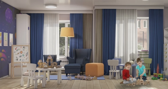 В ЖК «Галилей» есть детская комната. Здесь дети могут играть в специально оборудованной зоне или участвовать в развивающих занятиях с аниматорами. Детская комната позволяет разнообразить досуг детей и родителей.