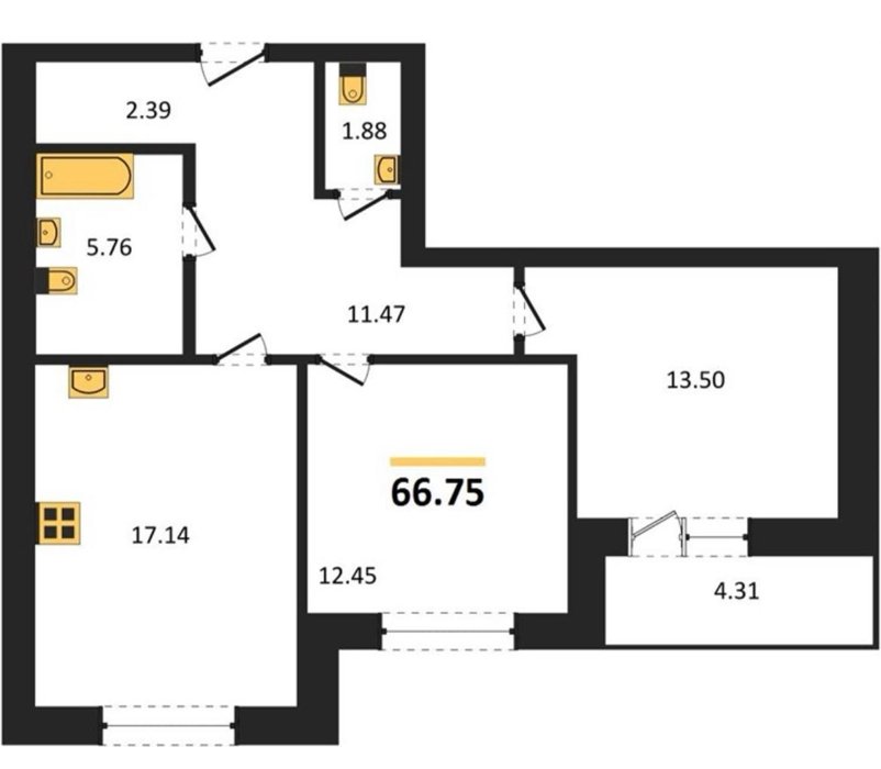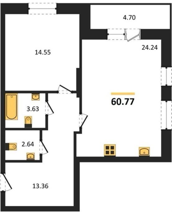 Площадь от 55.4 м2